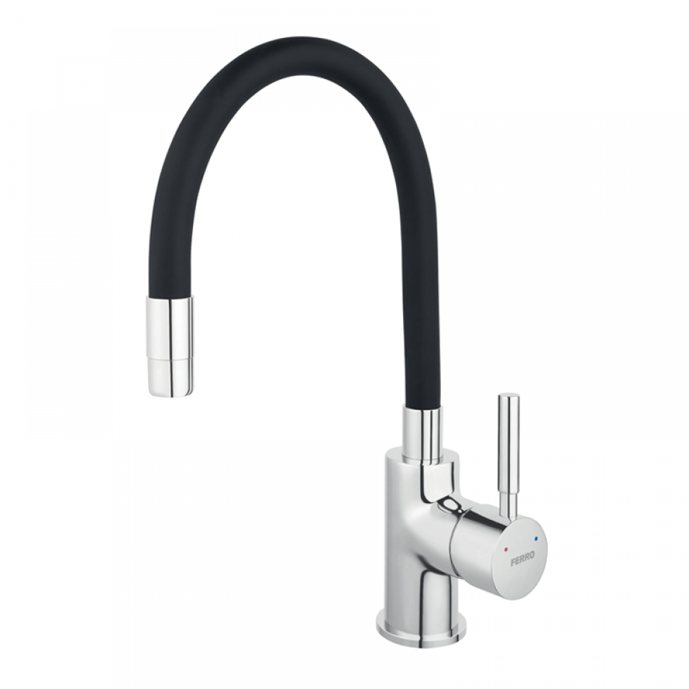 Zumba króm konyhai csaptelep, elasztikus fekete kifolyóval
